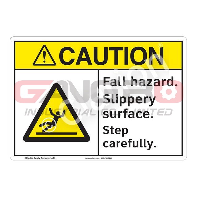 Label Type: | Caution. Fall Hazard. Slippery Surface. Step Carefully. |